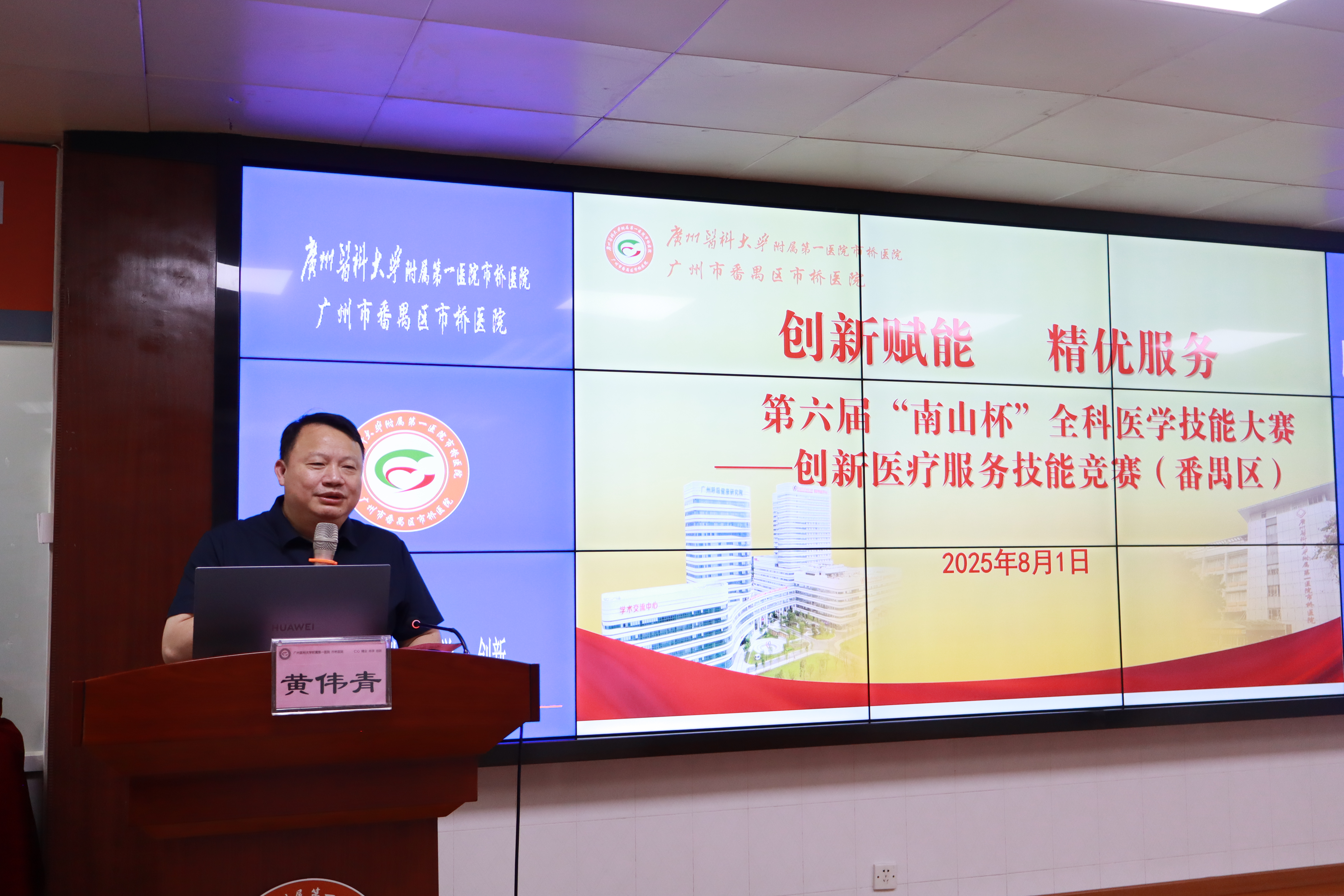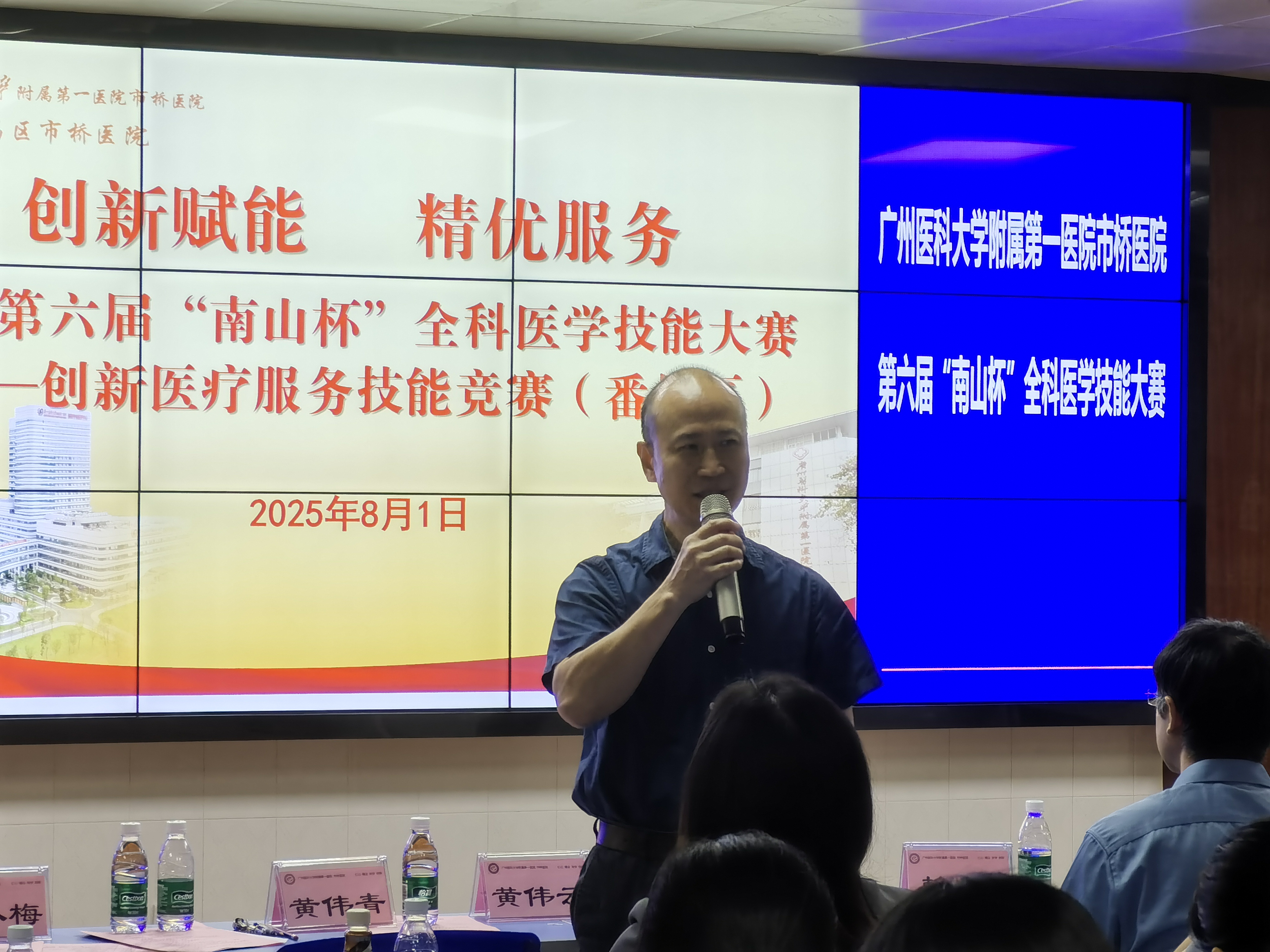 2025年8月1日,由广州医科大学附属第一医院、番禺区全科医学培训基地联合主办,番禺区市桥医院承办的第六届“南山杯”全科医学技能大赛——创新医疗服务技能竞赛(番禺区)在番禺区全科医学培训基地正式开幕。作为广医一院打造的品牌赛事首次落地番禺,本次竞赛以“创新医疗服务技能”为核心,汇聚基层医疗骨干力量,通过“以赛促学、以赛促融”推动全科医学人才培养与创新医疗服务实践深度发展。