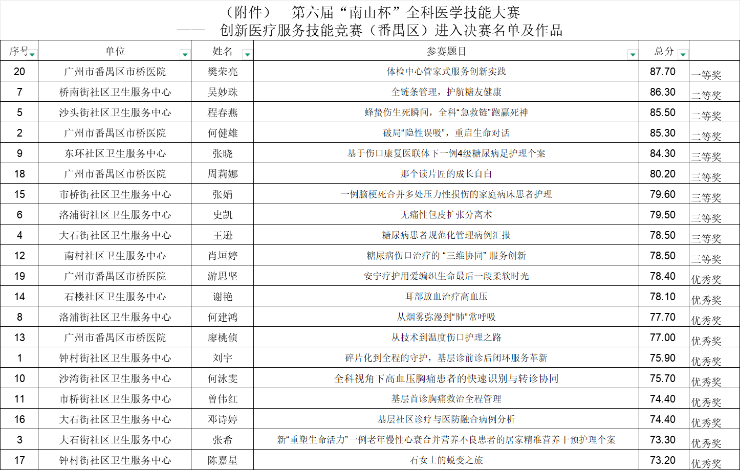 经过激烈角逐,最终来自番禺区市桥医院的樊荣亮获得一等奖,竞赛同时评选出二、三等奖及优秀奖等奖项。本次竞赛展现了番禺全科医学人才的专业素养与创新活力,为基层医疗服务体系的优化注入新动能。选手们提出的实践方案与创新构想,既扎根于基层医疗的真实需求,又呼应了“健康中国”战略下全科医学的发展方向,为推动基层医疗从“疾病治疗”向“健康管理”转型提供了鲜活样本。