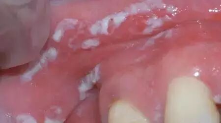 鹅口疮是一种真菌感染,看起来像口腔中的白色薄膜。如果患有影响免疫系统的疾病,则患鹅口疮的可能性更大,包括HIV感染/艾滋病、癌症以及使用类固醇药物治疗哮喘等。未治疗或未控制血糖的糖尿病患者也易感染,因为唾液中的糖会促进真菌生长。鹅口疮在戴假牙的人中也很常见。如果出现鹅口疮症状,马上看口腔医生。医生通过刮拭确诊后,可以通过一些药物来清除它。