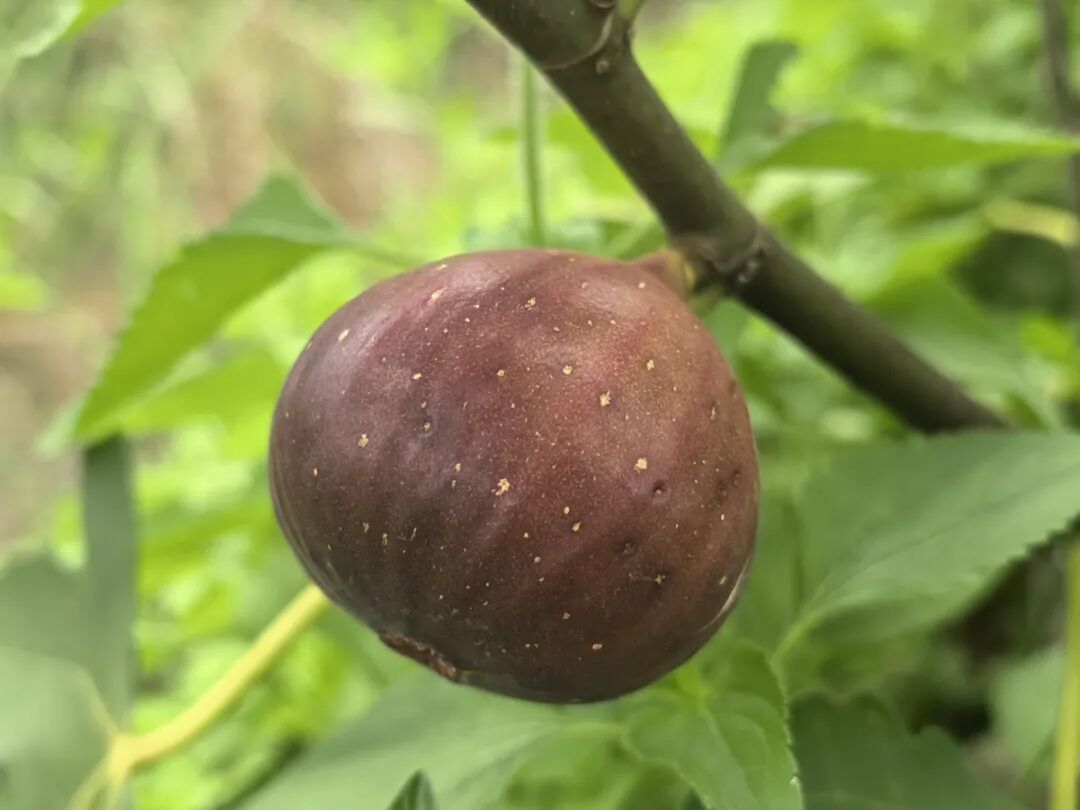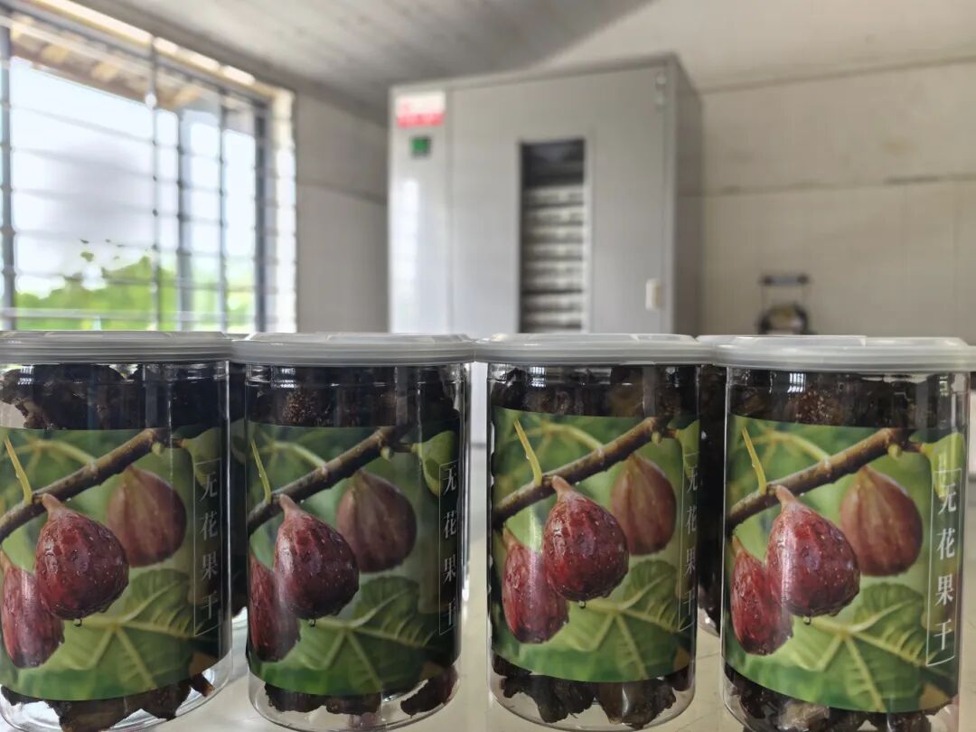 果园目前种了两个品种,一个是波姬红,另一个是芭劳奈。成熟的无花果透着诱人的光泽,尾部裂口露出粉嫩果肉。咬一口,波姬红清甜多汁,单果最重能达200克,适合送礼快递;芭劳奈甜度超20度,像裹了层蜂蜜,晒干后更是风味十足。目前果园除了卖鲜果,还加工无花果干,满足不同客户需求。
