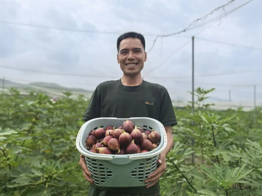 沿着顿岗镇大村路口公路前行,远远就能闻到无花果果园飘来的浓郁果香。园内,矮化修剪后的无花果树整齐排列,枝头挂满青红相间的果实,园主陈小军正和妻子忙着采摘成熟的果子。陈小军向记者介绍,果园依河而建,光照条件得天独厚,加之采用网纱覆盖的生态种植技术,不仅有效防虫抑草、保持土壤湿度,更确保了果品生态安全,风味独特,备受市场青睐。