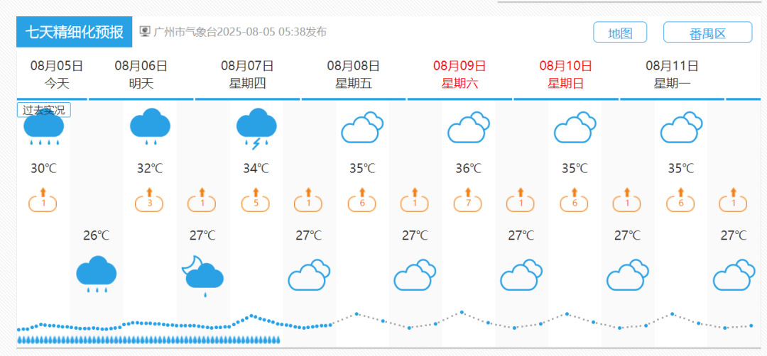 8月6日,多云到阴天,有中雷雨局部暴雨,气温在25℃-31℃;
