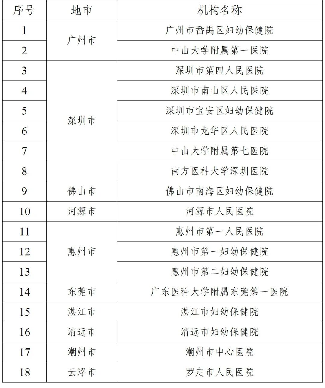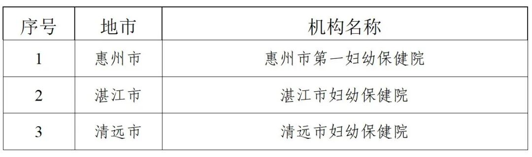 《通知》提到,根据《国家卫生健康委办公厅关于印发出生缺陷防治能力提升计划(2023-2027年)的通知》《广东省卫生健康委关于印发新生儿疾病筛查管理办法的通知》,经组织推荐和评估,确定惠州市第一妇幼保健院等3家医疗机构为市级新生儿听力筛查中心,确定广州市番禺区妇幼保健院等18家医疗机构为市级新生儿听力诊治机构。