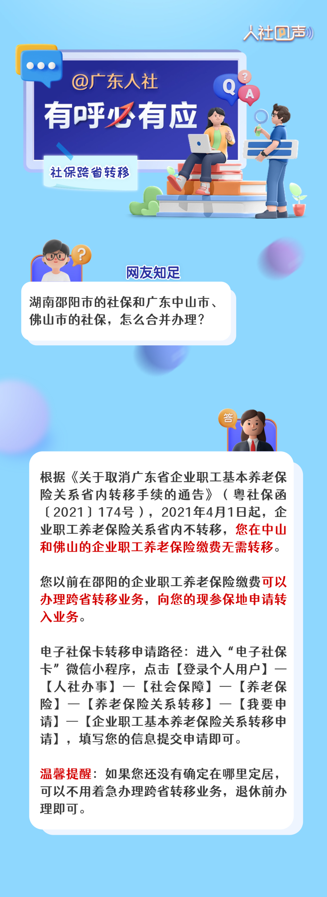 编者按:着眼“民”问题,互动“零”距离。为着力解决群众急难愁盼问题,把惠民生的事办实、暖民心的事办细、顺民意的事办好,广东人社推出《人社回声》栏目,聆听大家的心声,精选公众号留言进行答复,解答有关就业创业、社会保障、人才人事、劳动关系等领域的问题。