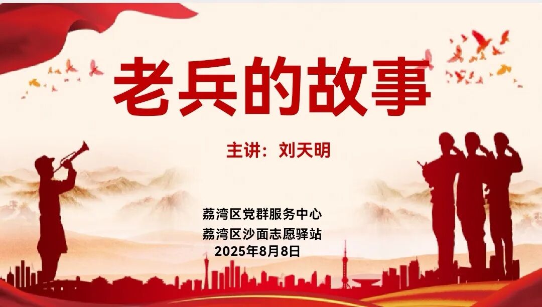 8月8日,中山好人工作室、小榄爱心助学团刘天明,当天上午受邀参加广州市荔湾区党群服务中心、荔湾区沙面志愿驿站“老兵的故事”宣讲,为十多名大中学生志愿者宣讲:①老兵激情燃烧的岁月,②老兵退役军人的公益之路,③老兵的你问我答的交流互动,④参观沙面国防教育基地。
