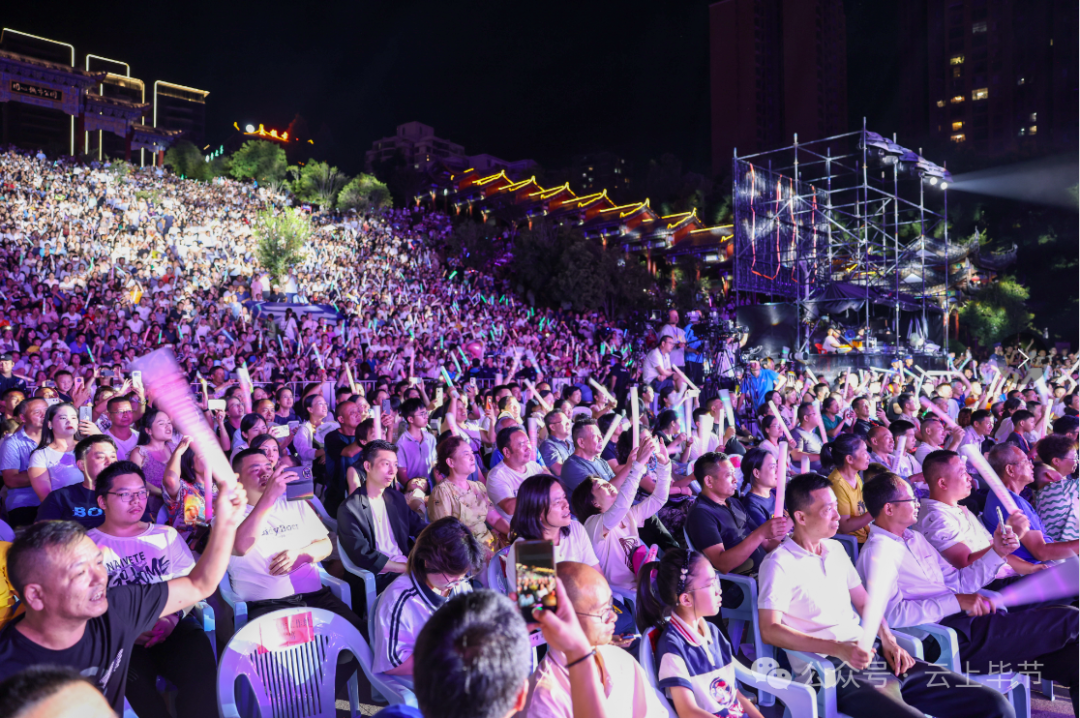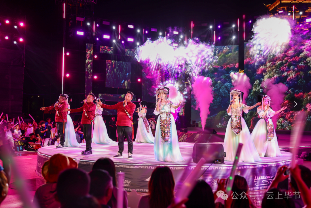 致敬之后,毕节的歌声再次响彻夜空。本土组合“阿西里西”带来的《草海之夜》与《羞羞的月亮》,以浓郁的民族风情席卷全场。