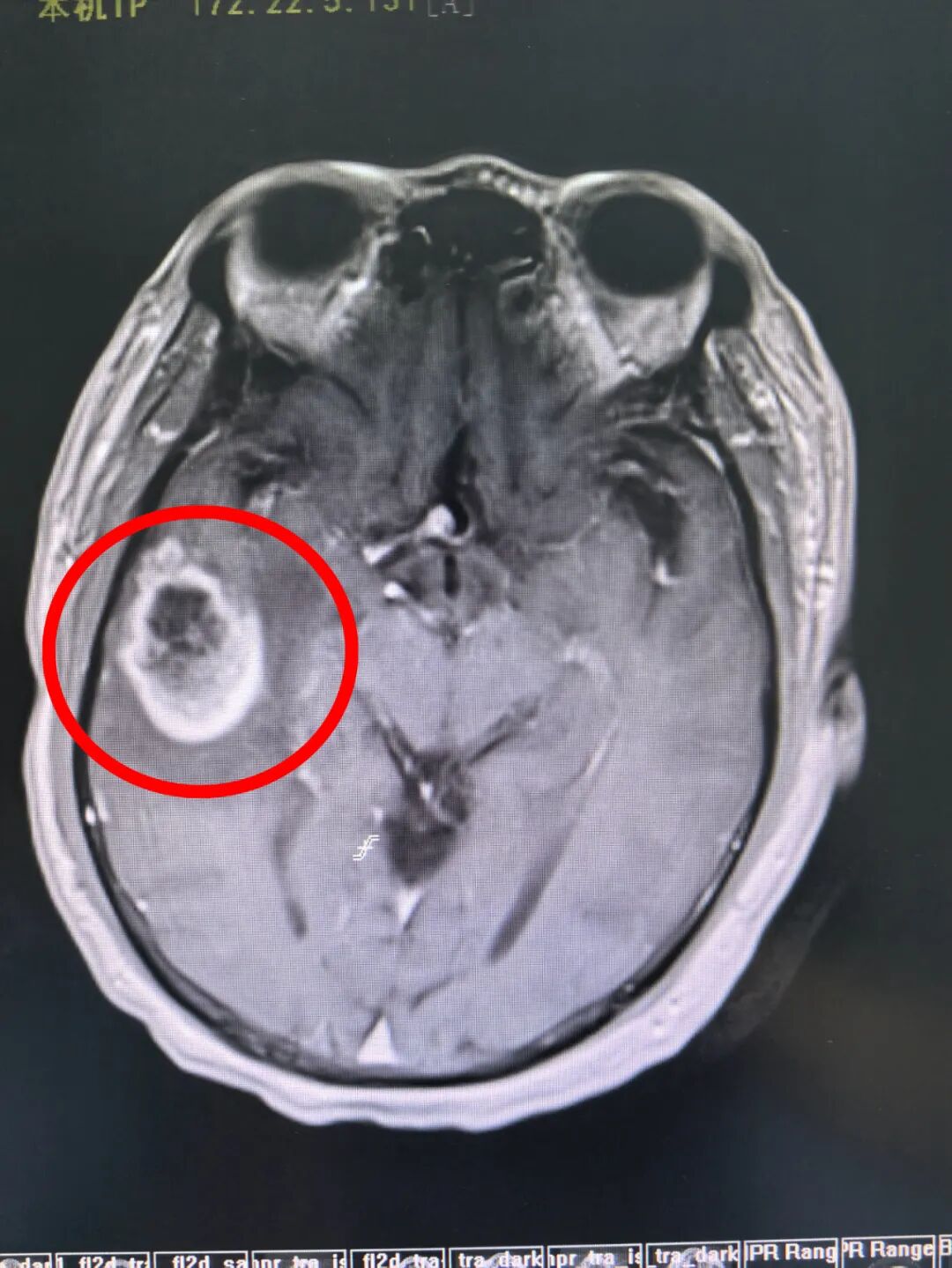患者陈先生因抽搐伴突然意识丧失被紧急送往医院。初步检查,医生发现他右侧颞叶长有一个肿瘤(考虑为胶质瘤),随后陈先生便入住神经外科。