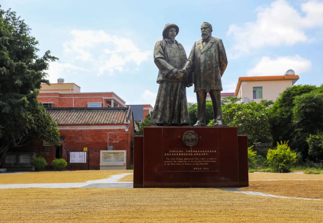 陈兰彬会见美国总统伯查德•海斯雕像。