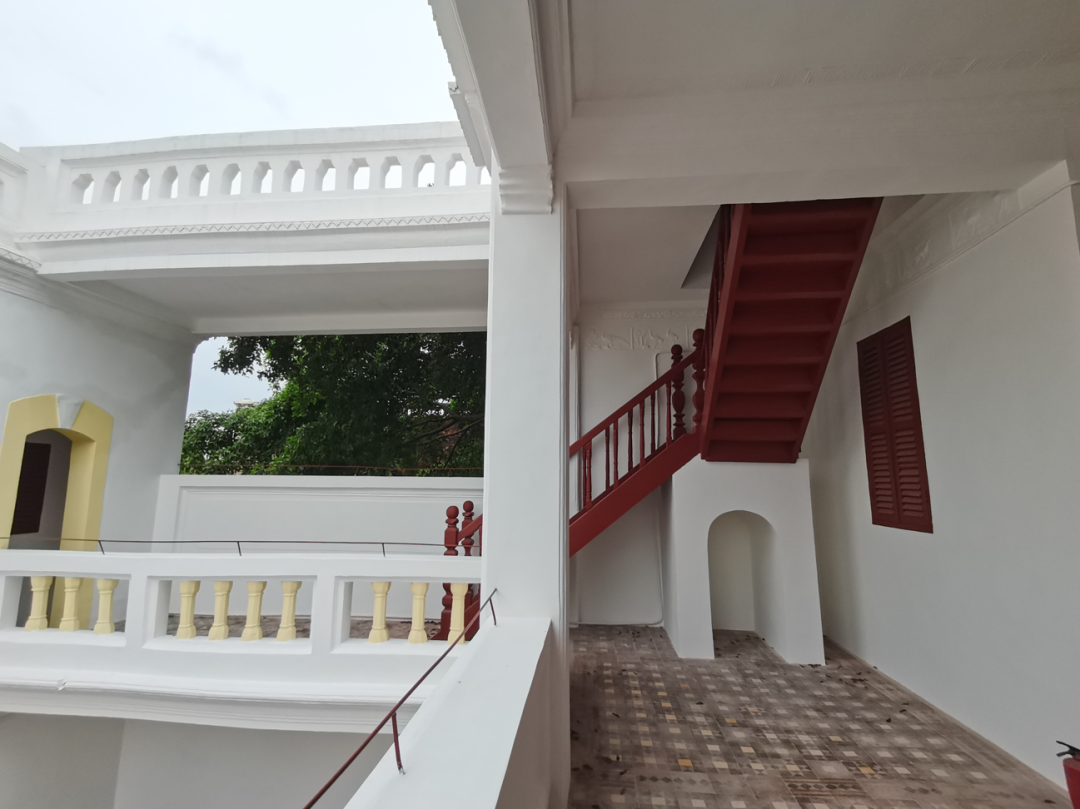 这座建于1931年的故居为红砖、水泥建筑,三开间两进布局,主楼由西座、内庭院、东座组成,古色古香,颇具岭南建筑风貌。故居坐东朝西,建筑面积583.57平方米,占地面积645平方米。