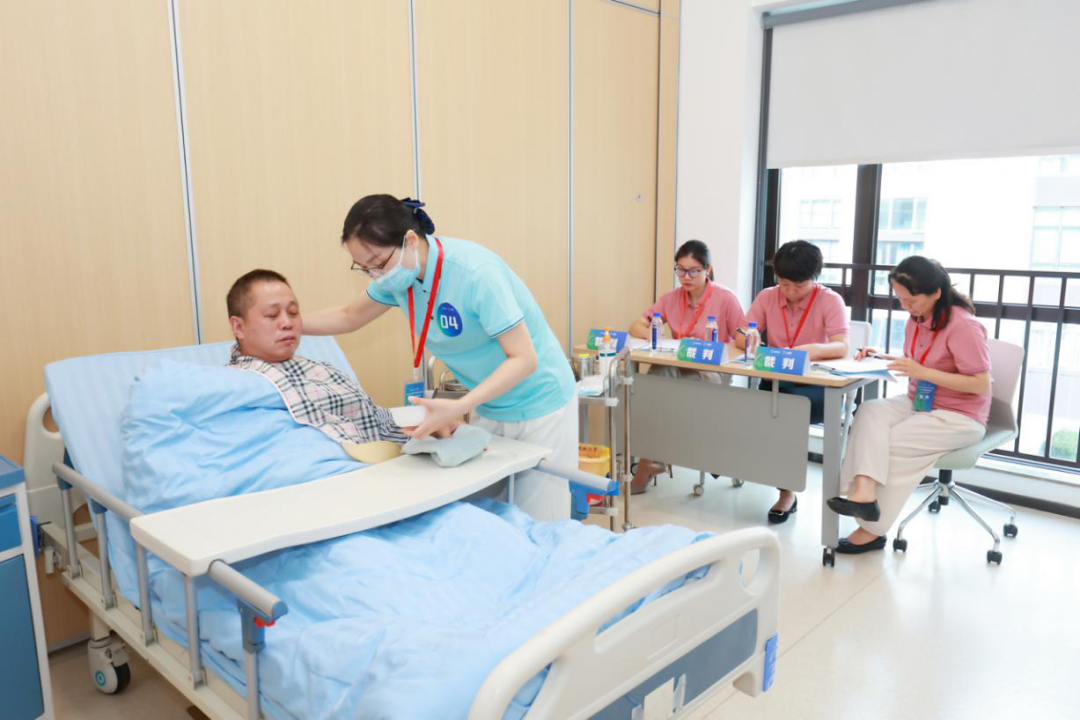 深圳市选拔赛采用国际通行的OSCE(客观结构化临床考试)形式,分三个站点对选手进行全面考核,内容涵盖进食、海姆立克急救法、肢位摆放法等关键技能。