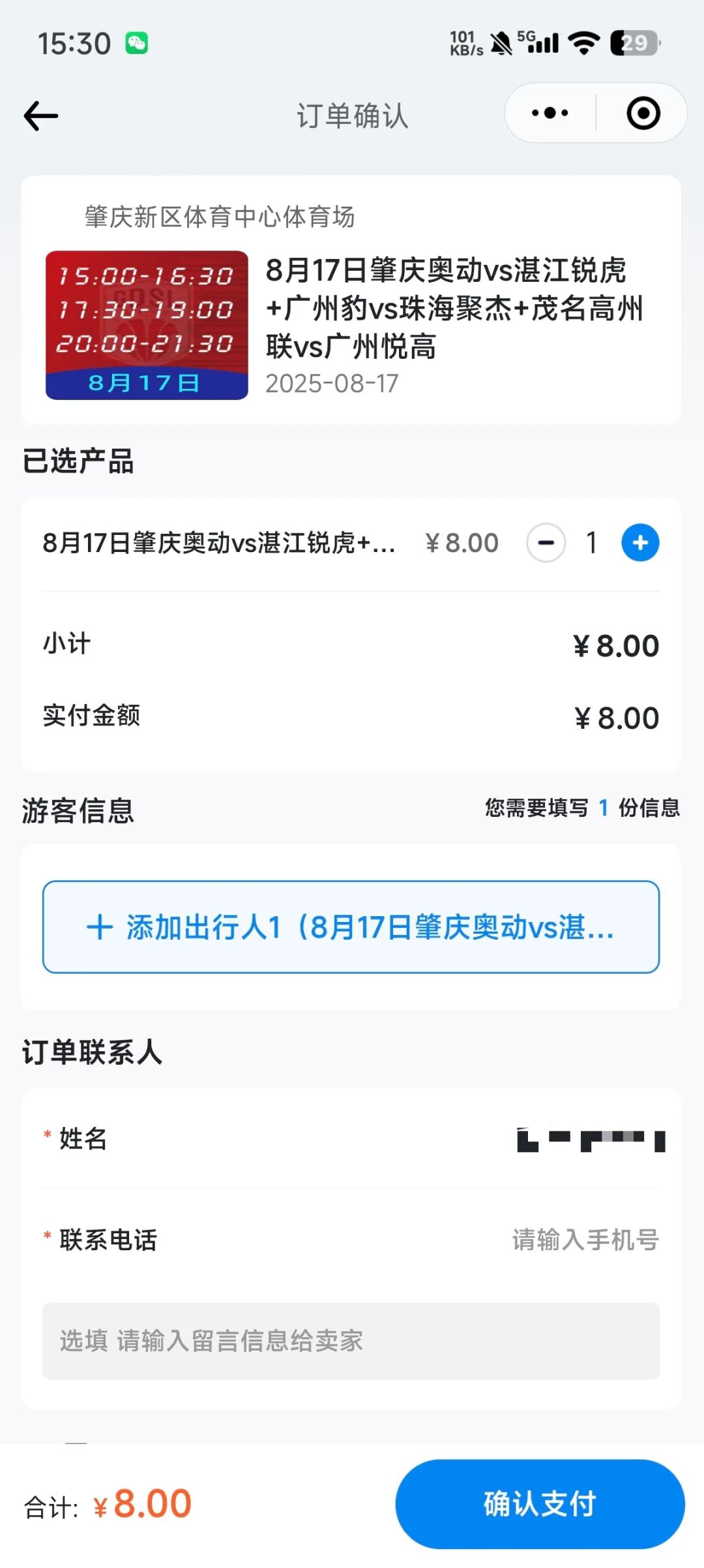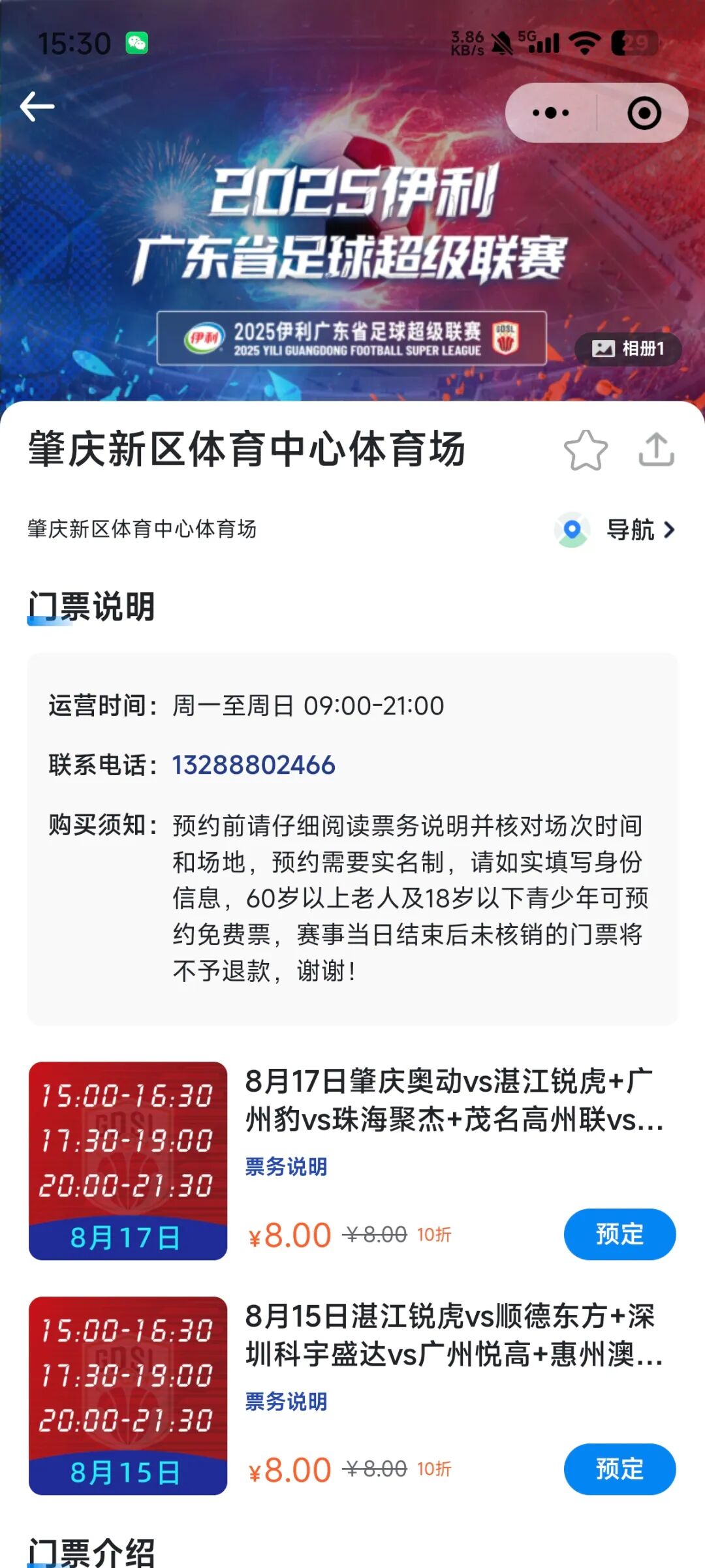 其中,赛事方为60岁以上老人及18岁以下青少年开放免费预约通道,其他人群购票费用为8元,同样在“广东足球赛事通”小程序提前进行预订。