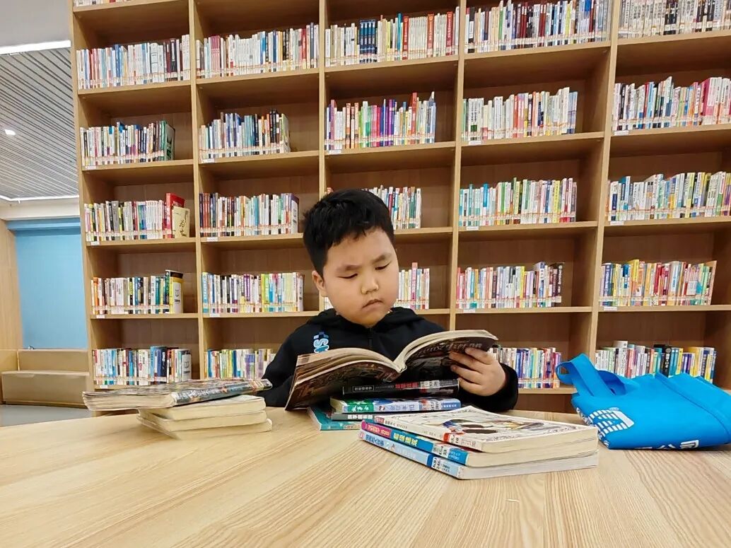 在家中的书柜上,摆放着自然科学、人文历史、艺术鉴赏、生活常识等各类书籍,让孩子在知识的海洋中自由遨游。正如那句“书山有路勤为径,学海无涯苦作舟”,我们不仅在家里陪伴孩子阅读,每个周末还会带他前往图书馆,沉浸在书香之中。日复一日,孩子渐渐养成了阅读的好习惯,知识储备不断丰富,视野也变得更加开阔。
