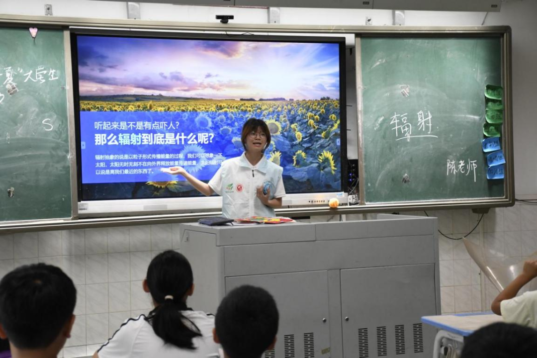 绿途同行突击队在福隆小学、沙角村社区综合服务中心等地开展臭氧层保护、生态环境系统保护、核辐射等主题课程。突击队成员化身科普宣传员,通过精心设计的课件、生动的现场讲解和趣味科学小实验,将生物多样性保护、垃圾分类、低碳生活等知识,播散进入青少年们的心田,激发他们热爱自然、保护环境的意识。