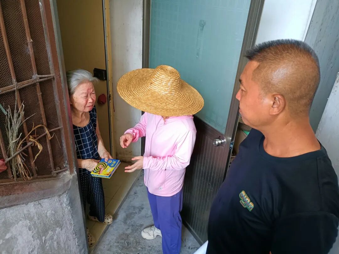 配送现场,工作人员顶着炎热穿梭在街头巷尾,逐户把蚊香送上门并发放蚊媒传染病防控宣传单,叮嘱居民及时清理家中积水、挂好蚊帐、正确使用蚊香。同时,他们巡查居民区和公共区域,清倒积水容器,现场指导居家防蚊措施,普及科学防控知识,从源头减少蚊虫孳生。