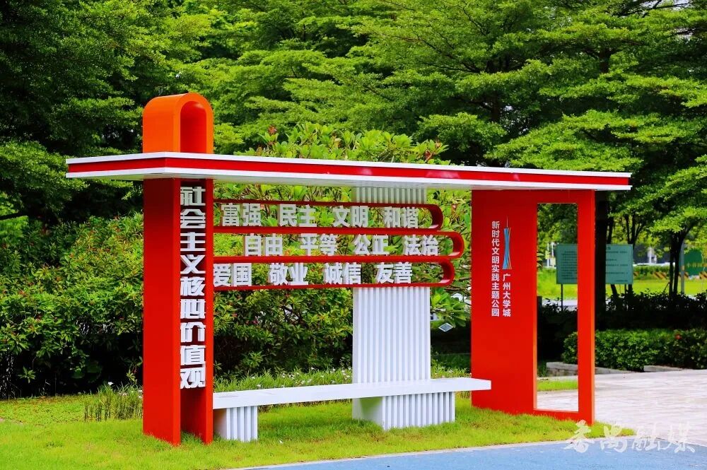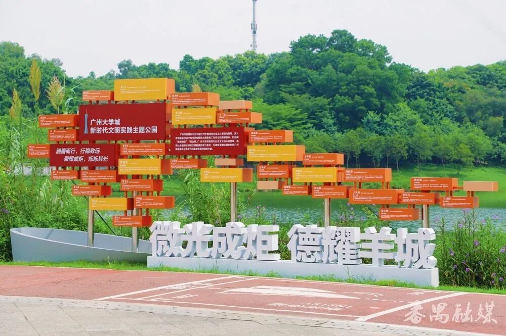 公园即课堂,一步一文明,作为广州市首个以新时代文明实践为核心的主题公园,也是环广州大学城文明实践Citywalk路线的核心区和出发点,广州大学城新时代文明实践主题公园精心规划“时代育人”“绿意动人”“以文化人”三个篇章,串联起多个富有特色的景观点,移步换景、层层递进,把文明大课堂融入优美的自然风光,让文明新风吹进市民群众的心坎。