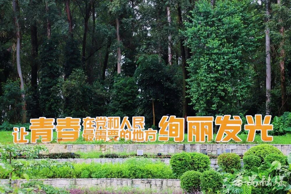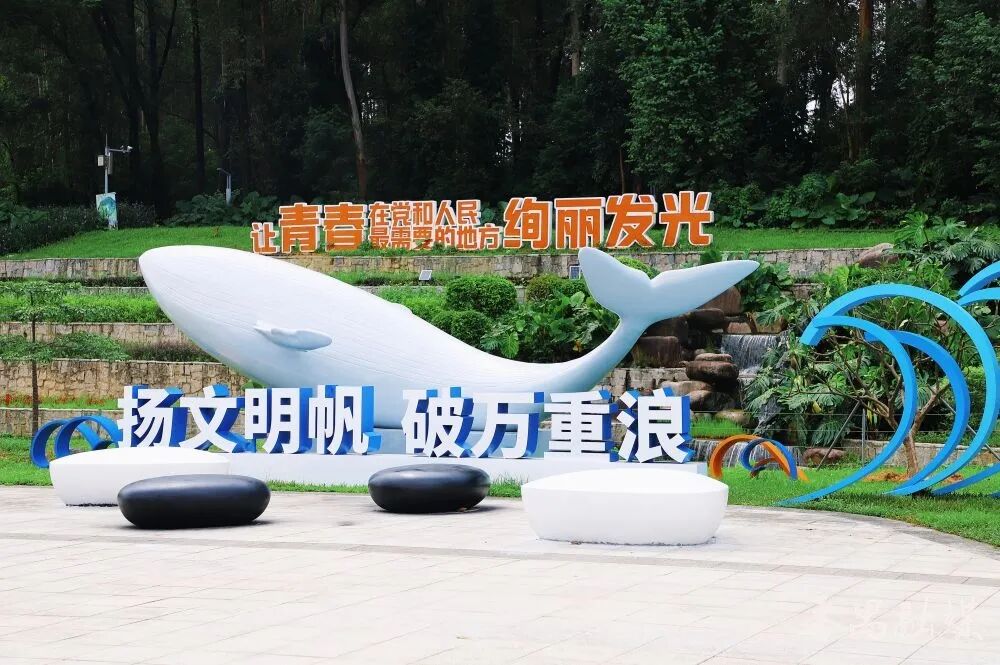 在公园人才广场的山坡上,“让青春在党和人民最需要的地方绚丽发光”立体字景观迎着骄阳站得笔直,每一道笔画都透着千钧之力。站在坡下抬眼望,那字里行间似有时代回响——是召唤,也是期许。广州大学城的莘莘学子走过这里,或许有人会驻足凝视,在心底默默接下这份嘱托:用滚烫的青春、踏实的汗水,在时代的长卷上写下属于自己的那笔璀璨。