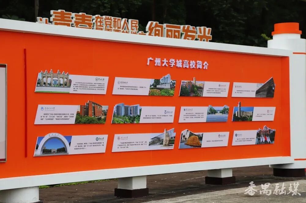宣传栏右侧的未来校友打卡框,则是写给未来的约定。在这里留下身影的学子,都将被赋予“广州大学城未来校友”的美好期许,学海无涯,实践为舟,为美好未来的建设添上坚实砖瓦。