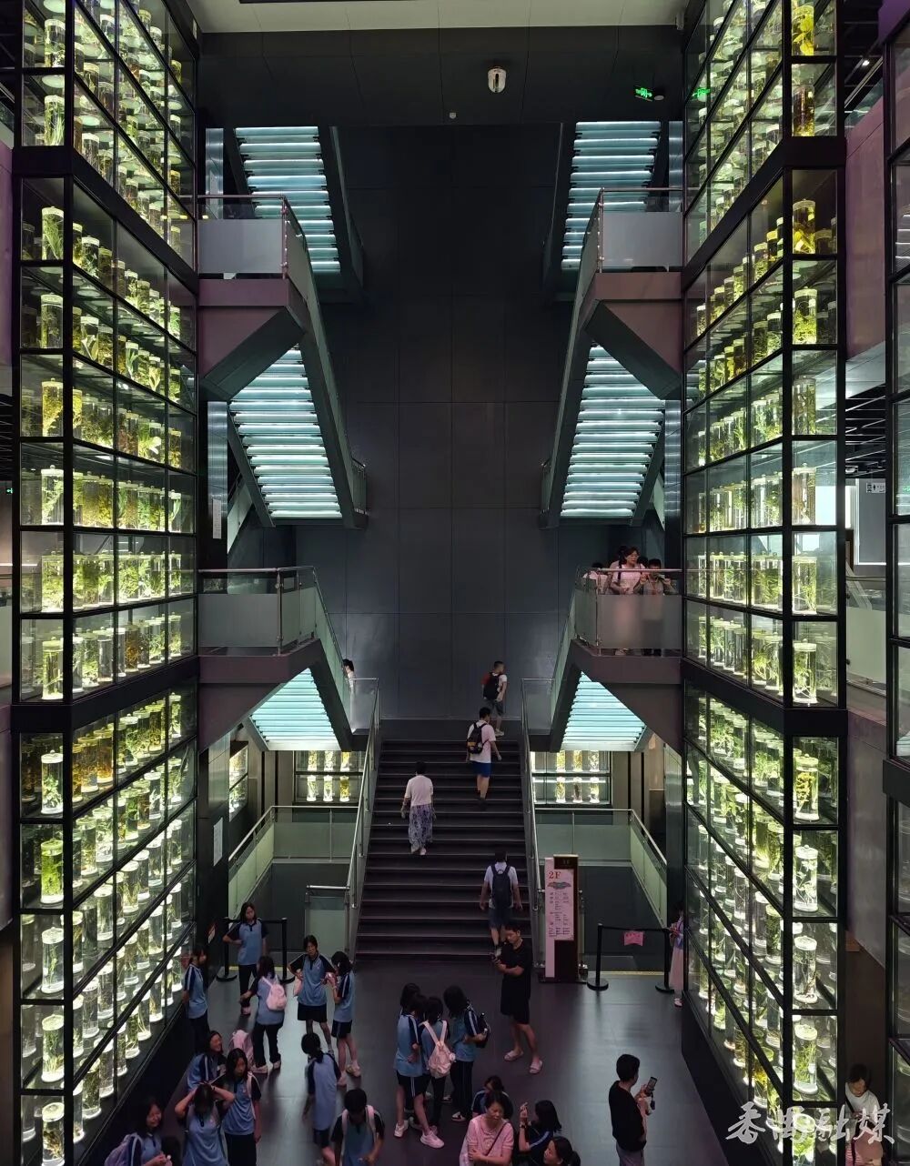 适时往东,“中药水晶宫”乍现眼前。广东中医药博物馆坐落于广州中医药大学内,600多个晶莹剔透的玻璃瓶贯穿3个楼层,不仅是中医药的知识殿堂,也是带娃打卡的好去处。