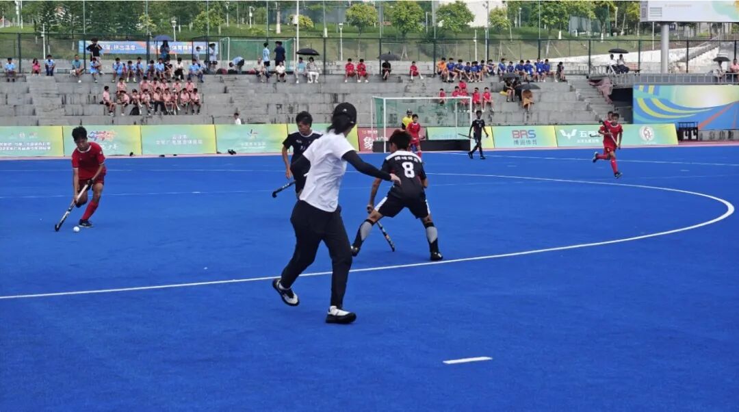 8月16日上午,2025年广东省青少年曲棍球锦标赛男子组赛事在云浮曲棍球场火力全开。作为省内年度最高级别的曲棍球赛事,东道主云浮队在首日进行的甲、乙两组比赛中双双奏凯,取得开门红,为主场观众献上精彩表现。