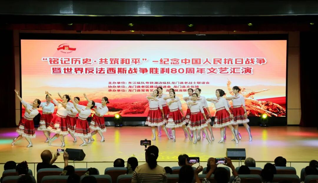 8月16日下午,龙门县文化馆小剧场内气氛庄重而热烈。“铭记历史 共筑和平”——纪念中国人民抗日战争暨世界反法西斯战争胜利80周年文艺汇演在此举行。本次汇演由东江纵队粤赣湘边纵队龙门县老战士联谊会主办,龙门县老区工作促进会、龙门县文化馆协办,龙门县常青艺术团、龙门悦龙歌舞队承办,以艺术的力量深切缅怀英烈不朽功勋,弘扬伟大抗战精神。