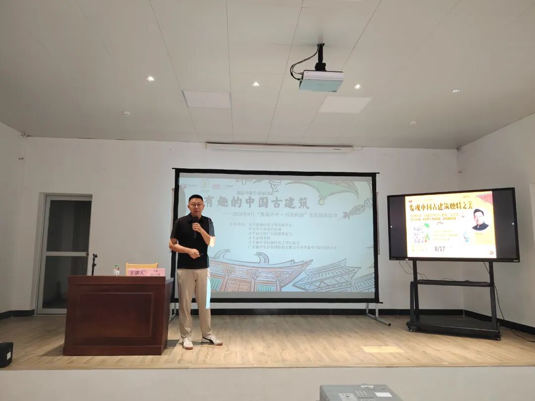 8月17日,2025年南国书香节系列活动·名家活动——“发现中国古建筑独特之美”杨爸图说《有趣的中国古建筑》分享会在开平市图书馆举办,知名自媒体“杨爸图说”主理人杨大炜以图为媒,妙解千年建筑智慧,激发市民阅读热情,助力营造全民阅读氛围。