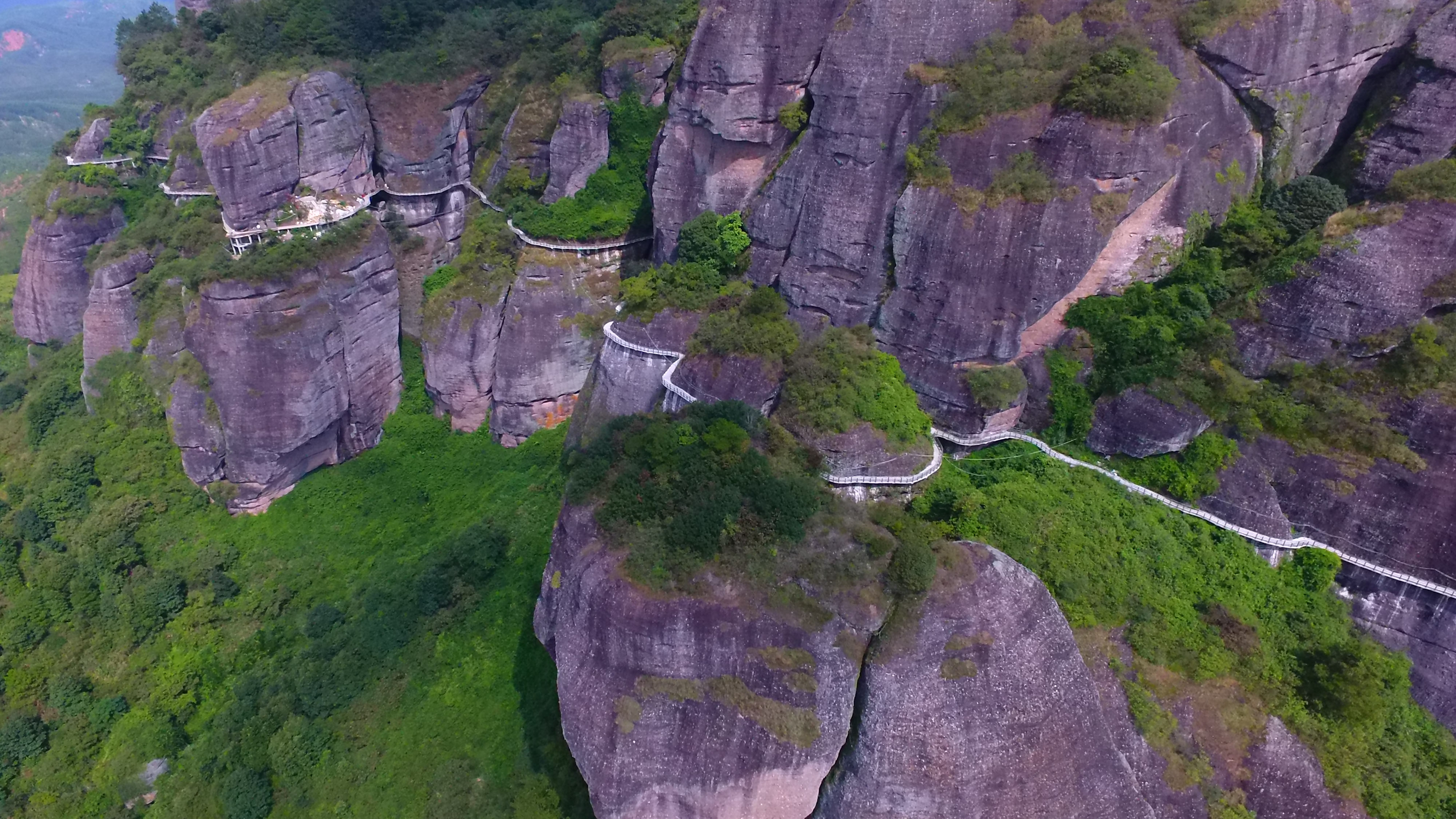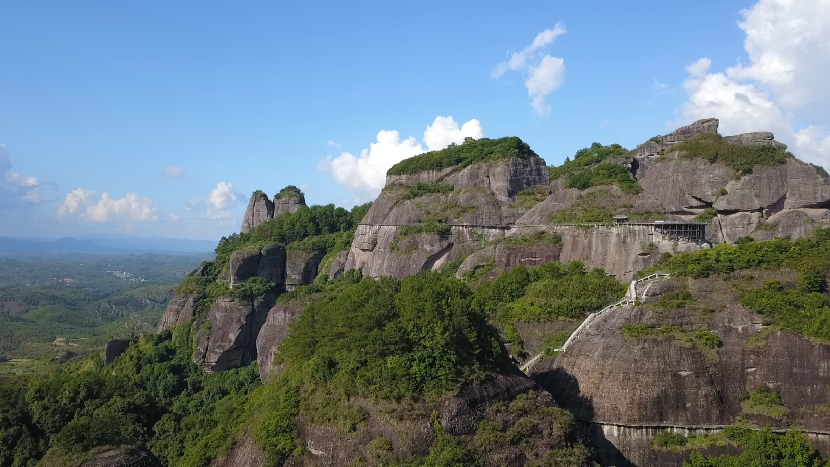 大约在7000万年前,现在龙川中部的一个地方沉积了大量红色的岩层,一阵剧烈的造山运动把原来在底部的层积岩抬升到地面。此后的7000万年里,水流和风如同自然的雕刻师,对这片岩层进行了漫长的雕琢:岩石被流水切割侵蚀,山坡经风化作用后以崩塌形式逐渐后退,最终,留存的岩层构成了红色山块。数千万年光阴流转,一座赤色奇峰在龙川大地傲然耸立,这便是后来被称作“霍山”的丹霞地貌奇观。