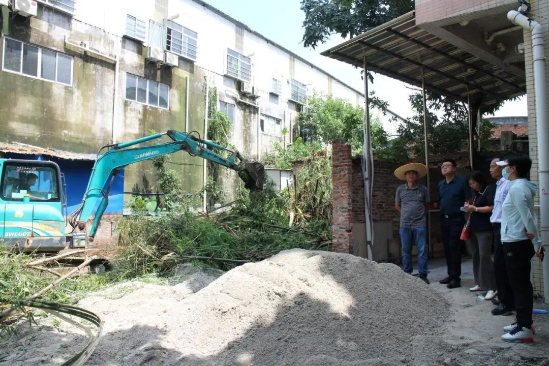 排查发现,大华村核心区有一个废弃池塘、还夹杂着竹林、果树、多处菜地和田边水渠,未加盖的污水渠隐匿其中,成为了蚊虫孳生的“温床”,也成为本次卫生整治行动的难点。考虑到人工清理效率低,成效有限,黄俊杰敏锐意识到风险,通过公卫委平台搭建协作桥梁,对接中国水利水电第十四工程局,协调调集钩机、铲车、抽水机等大型设备,助力快速填埋废弃池塘和清理周边杂物。在热火朝天的整治现场,他紧盯作业进度,指挥机械平整土地、清运杂草垃圾、抽干水渠河塘、覆土填埋隐患点。20台次机械轰鸣作业,约28吨垃圾杂草被清运,5亩土地得到平整,内部卫生黑点和外围孳生盲区均被有效拔除。针对下沟渠淤泥沉积、黑臭水体滋生蚊的难题,他立即联系消防救援支队,调集消防车采用“分段封堵—高压冲洗—污物清捞”的创新战术,150米淤塞沟渠在高压水枪下快速疏通,3处堵塞点成功打通,“水到渠清”的效率大大提升。