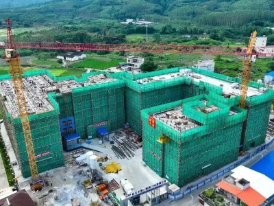 近日,记者走进韶关市武江区养老服务中心项目建设现场,看见塔吊长臂等大型机械轰鸣、来回挥舞,工程车辆频繁穿梭,近百名工人分工协作有序地进行内外抹灰、装饰装修等作业。