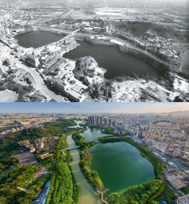 ●2000年,花都区顺应民意果断关闭了周边水泥厂,并决定利用青石海采石遗址和新街河流域原有的自然地形地貌建设一处城市公园,也就是现在的花都湖。经过不断的修复完善、功能提升,目前花都湖已经成为集生态保护、环境教育和市民休闲娱乐等功能于一体的城市滨河公园;