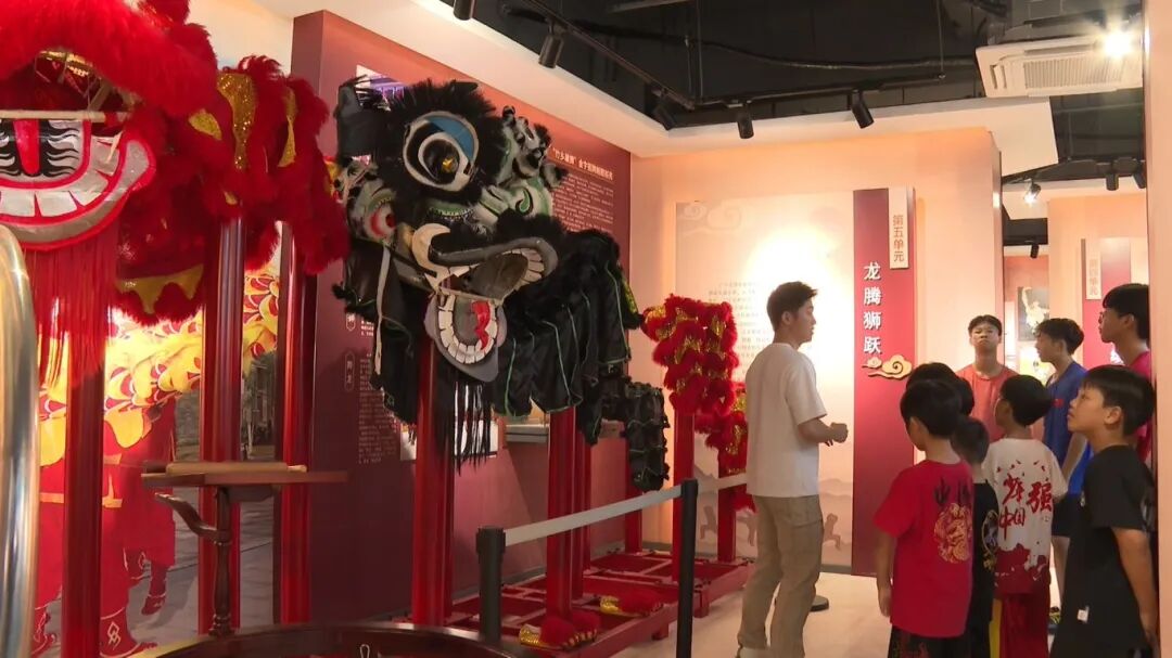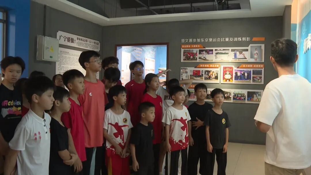 走进广宁武术文化展览馆,学生们正围站在战国兵器展台前,认真聆听讲解员介绍青铜剑、矛等文物背后的习武史;移步至“武术之乡” 展区,1992 年国家体委授予的 “中国武术之乡” 牌匾前格外热闹,同学们围着牌匾上的烫金大字轻声交流,当听到“南拳王” 6 次蝉联全国冠军时,现场响起阵阵赞叹。