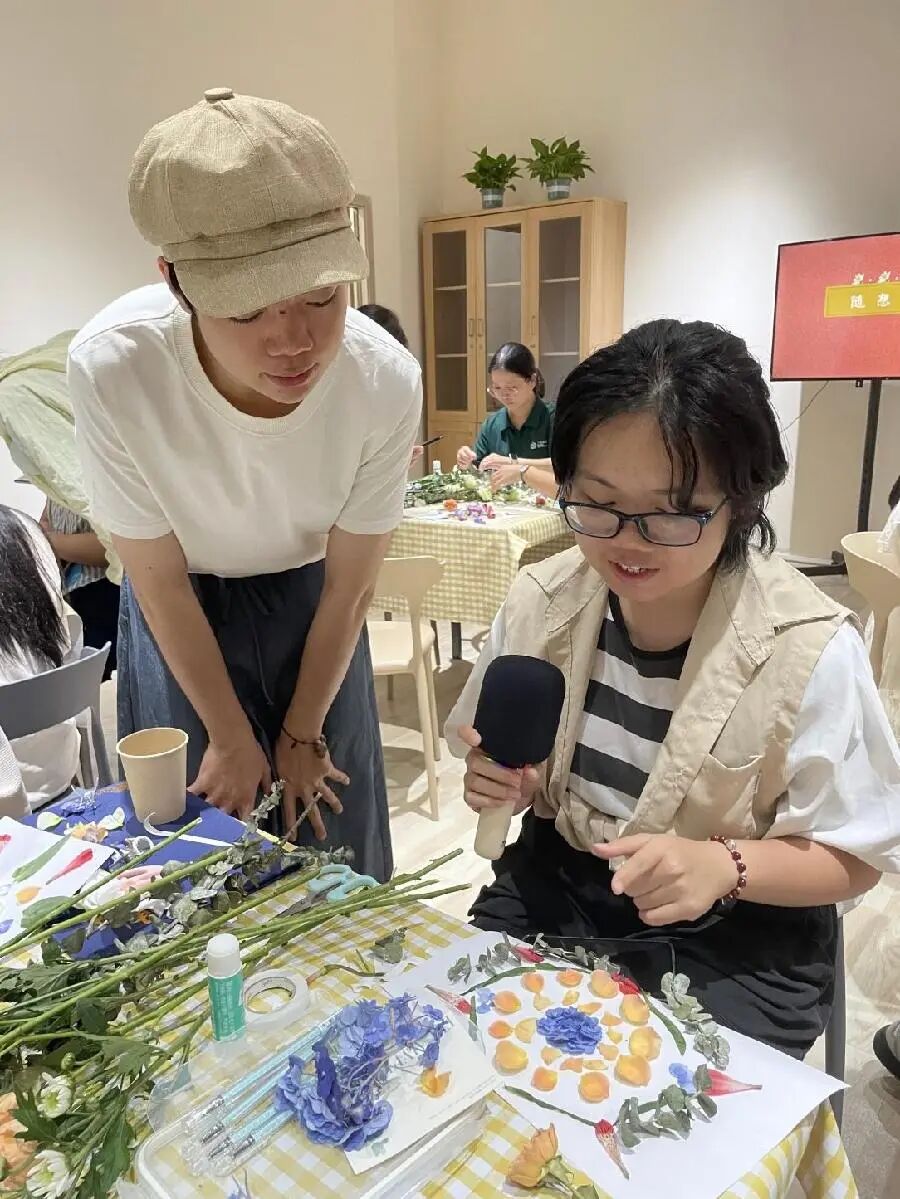 同期开展的自然曼陀罗活动,由心理学与花艺爱好者泫茗主导,介绍曼陀罗绘画的溯源和作用,引导参与者借助花艺创作表达内心,实现情绪的梳理与释放。