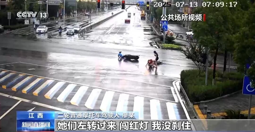 暑假期间,13岁的刘某骑电动自行车搭乘13岁的周某,在江西龙南一红绿灯路口左转时闯红灯通行,与绿灯正常通行的二轮普通摩托车发生碰撞,造成两车受损、三人受轻微伤的道路交通事故。