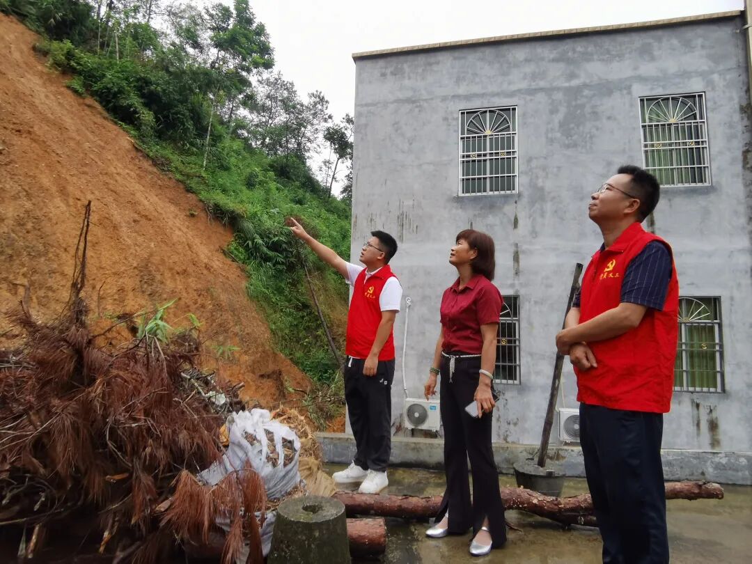 受前期台风雨影响,六都镇佛水村委单竹大围村发生房屋后山山体滑坡。因降雨持续暂不具备施工条件,六都镇及区自然资源局等部门协同应对,一方面认真组织“回头看”,深入单竹大围村滑坡点实地监测山体位移、裂缝变化等动态情况,全面掌握隐患发展态势;另一方面安排工作人员逐户走访周边群众,通过面对面讲解、发放避险明白卡等方式,提醒大家增强防灾意识和提高临灾避险能力。