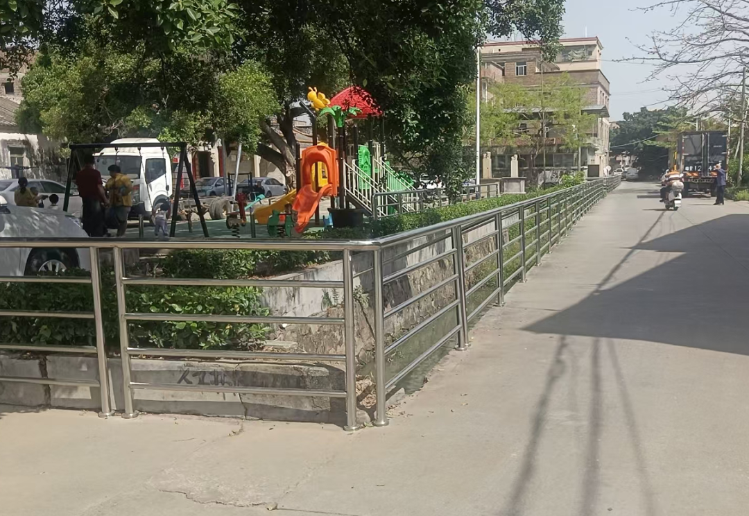 平东村公园前安装护栏
