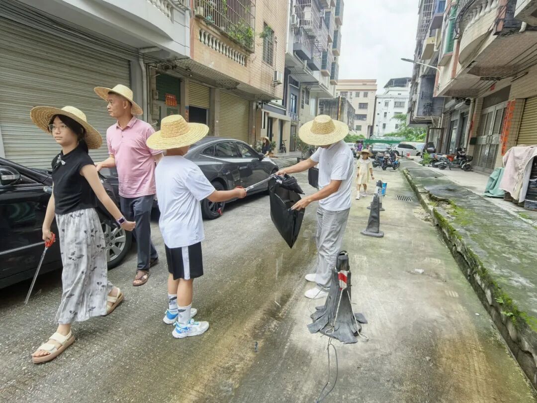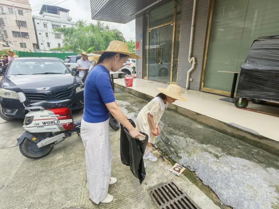 随后,家长与孩子携手化身“健康守护小卫士”,仔细搜寻活动场地的废弃易拉罐,并翻检落叶堆中的塑料瓶,将垃圾逐一捡入垃圾袋中。孩子们还不时念叨着“不给蚊子留家”。这一环节不仅让亲子家庭体验到动手劳动的成就感,更直观地理解了“清除死角、防蚊灭蚊”对于阻断疾病传播的重要性,使每个家庭都成为预防基孔肯雅热的积极践行者。