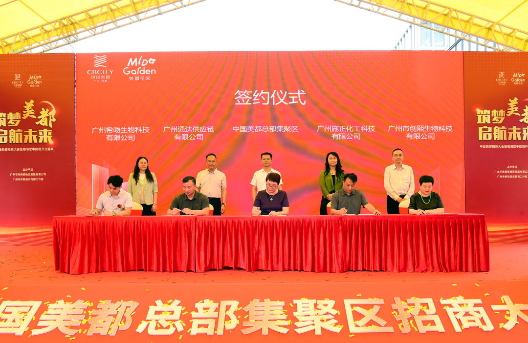 活动现场,中国美都与八家新入驻企业进行签约,共同助力花都时尚美妆产业高质量发展。