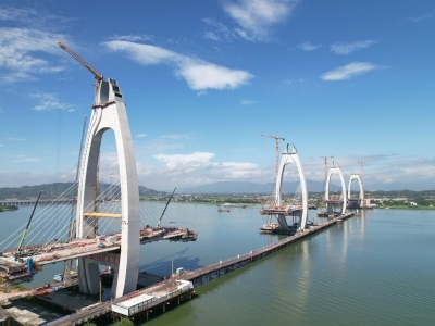 “目前大桥已完成主塔施工,正全力冲刺斜拉桥主梁施工,已完成102节,超过五成。施工人员正在抢抓工期,预计2026年上半年实现合龙。”李鸿升介绍。