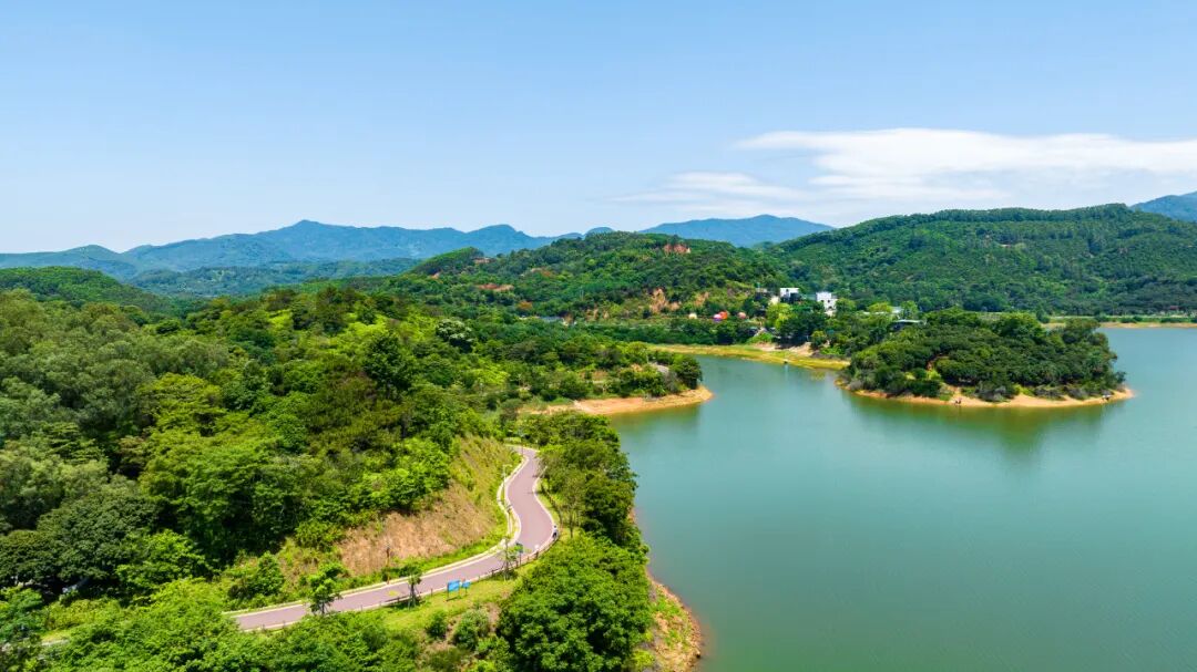 显岗水库绿道有湖镇段和横河段,景色绝美,各有特色。这里四周山体连绵起伏,如同翠绿的屏障将水库环抱其中,沿着绿道骑行穿梭,畅享惬意的户外休闲时光。