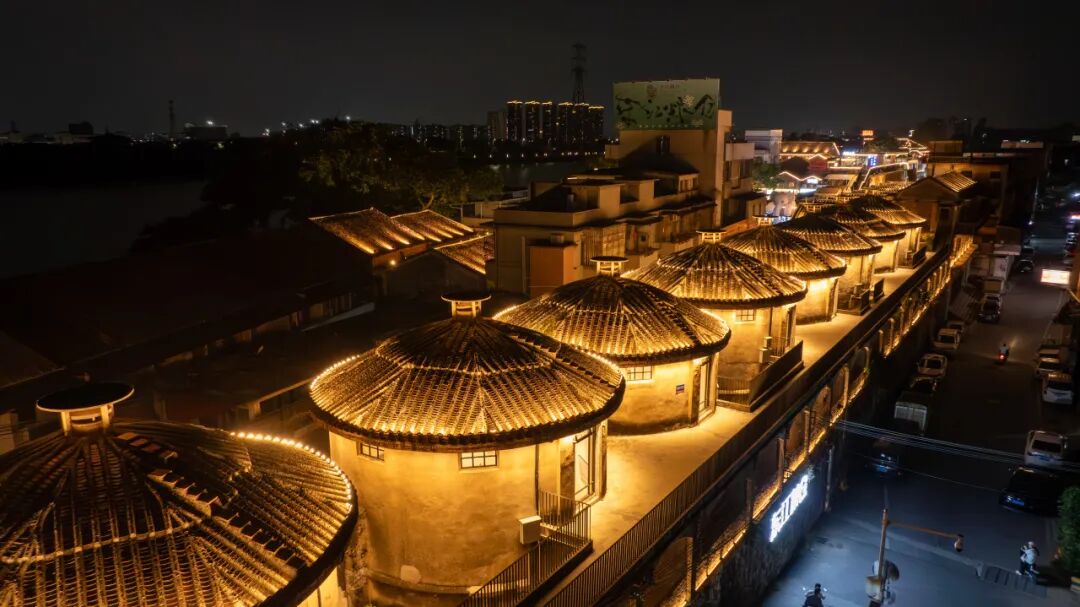 东江粮仓文化创意产业园前身为建于20世纪50年代的园洲粮仓,其中有9座连片方仓以及8个联排圆筒仓。在保留原有建筑风貌的前提下进行升级改造,经过创意设计和业态重塑,蜕变为一个多元业态综合体。