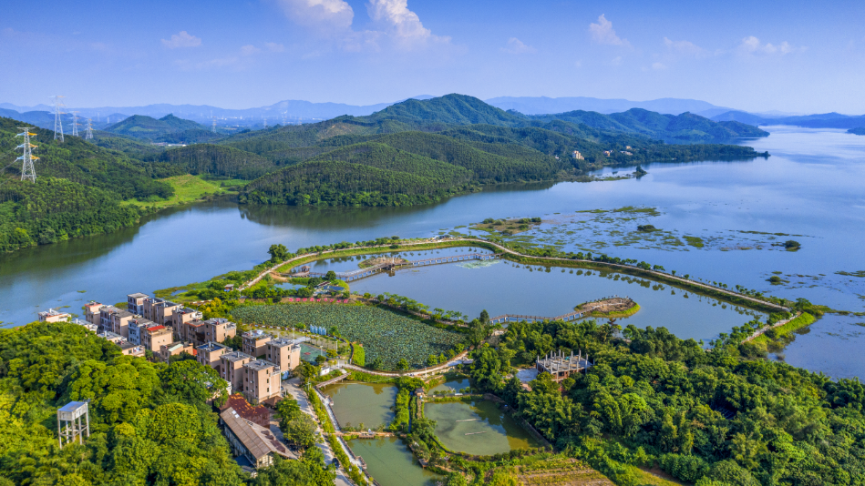 横河白官坳民宿集群毗邻显岗水库,这里山水相依,绿意葱葱,有惠州“小洱海”之称。一栋栋别致民宿民居依山傍水而建,游客可晨起看湖雾漫山,夜卧听虫鸣入梦,感受“推窗见绿,出门入画”的诗意栖居。