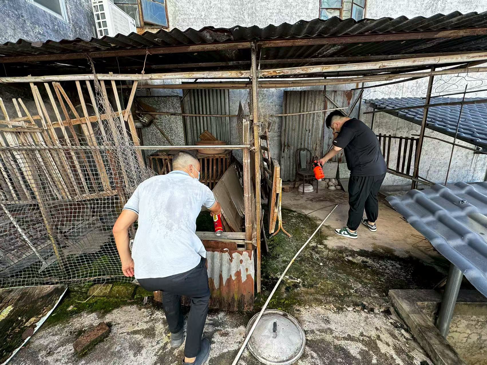 期间,针对各类露天容器、低洼易积水处及排水沟渠,党员干部帮助居民翻盆倒罐,彻底清理,同步巡查居民阳台、院落,指导并协助居民清理家中无用积水容器,提醒妥善管理水生植物。同时对绿化带、卫生死角积存的垃圾、落叶进行集中清理,疏通堵塞沟渠,清除各类废弃杂物,系统铲除蚊虫藏匿与滋生的空间,并组织药物喷洒消杀,发动群众参与到爱国卫生运动。“我们积极响应县委、县政府的号召,并采取了科学有效的消杀措施,积极入户排查登记、倒积水,清理生活垃圾、卫生死角、‘网格化’全面排查等,确保此次基孔肯雅热疫情防控工作落实到点、落实到人。”镇包村(社区)干部、市北社区工作组组长黄奕鸿说。