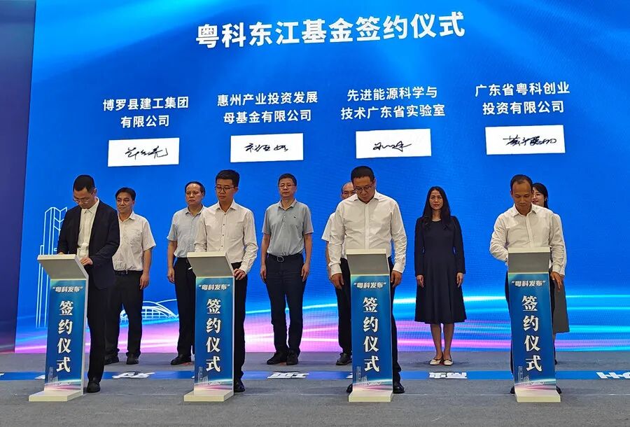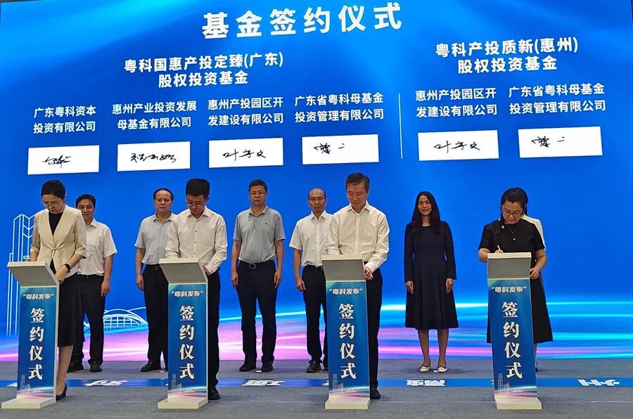 活动现场举行了基金签约仪式。聚焦惠州科技成果转化、现代化产业建设和新质生产力培育,粤科集团联合东江实验室、惠州国投集团、惠州产投集团、博罗县建工集团等组建了粤科东江基金、粤科国惠产投定臻基金、粤科产投质新惠州基金共3只基金,总规模12亿元,通过“以投促引”、优质项目培育和链主企业打造,全方位助力惠州加快强链补链延链、科技与产业互促双强。