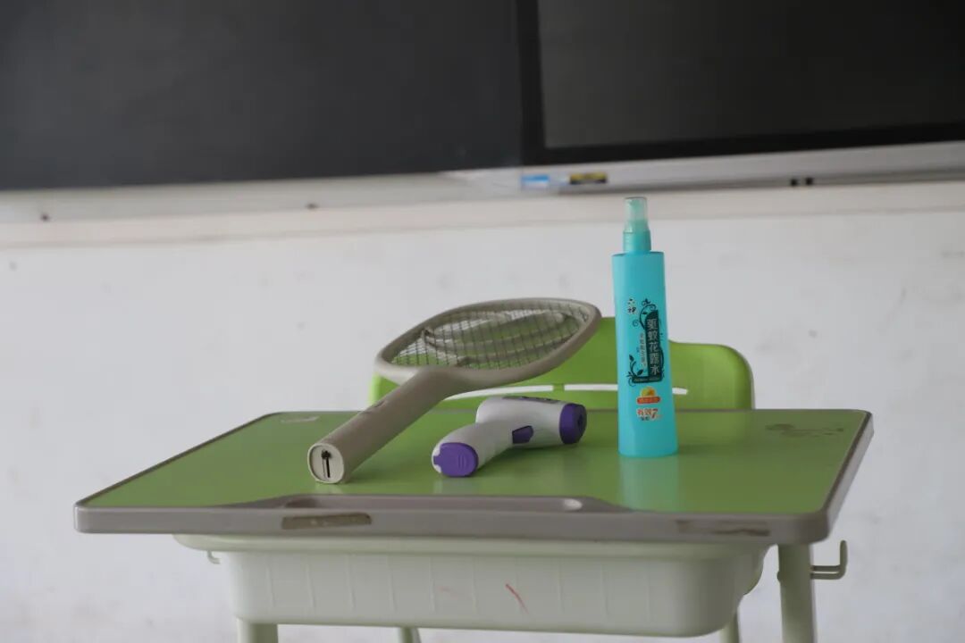 此外,每间教室均配备了驱蚊水、电蚊拍等防蚊物资,为学生提供及时防护。
