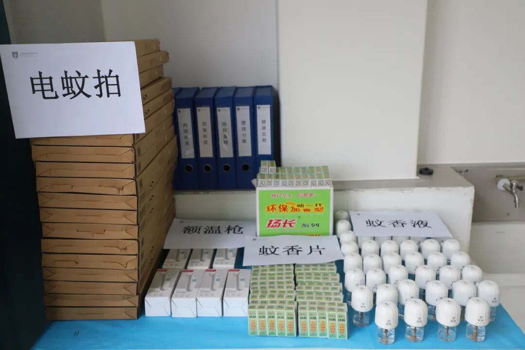 同时,学校储备了充足的防蚊物资,包括电蚊拍、蚊香液和蚊香片等,并分发至每间教室、办公室和寝室,筑牢防蚊屏障。