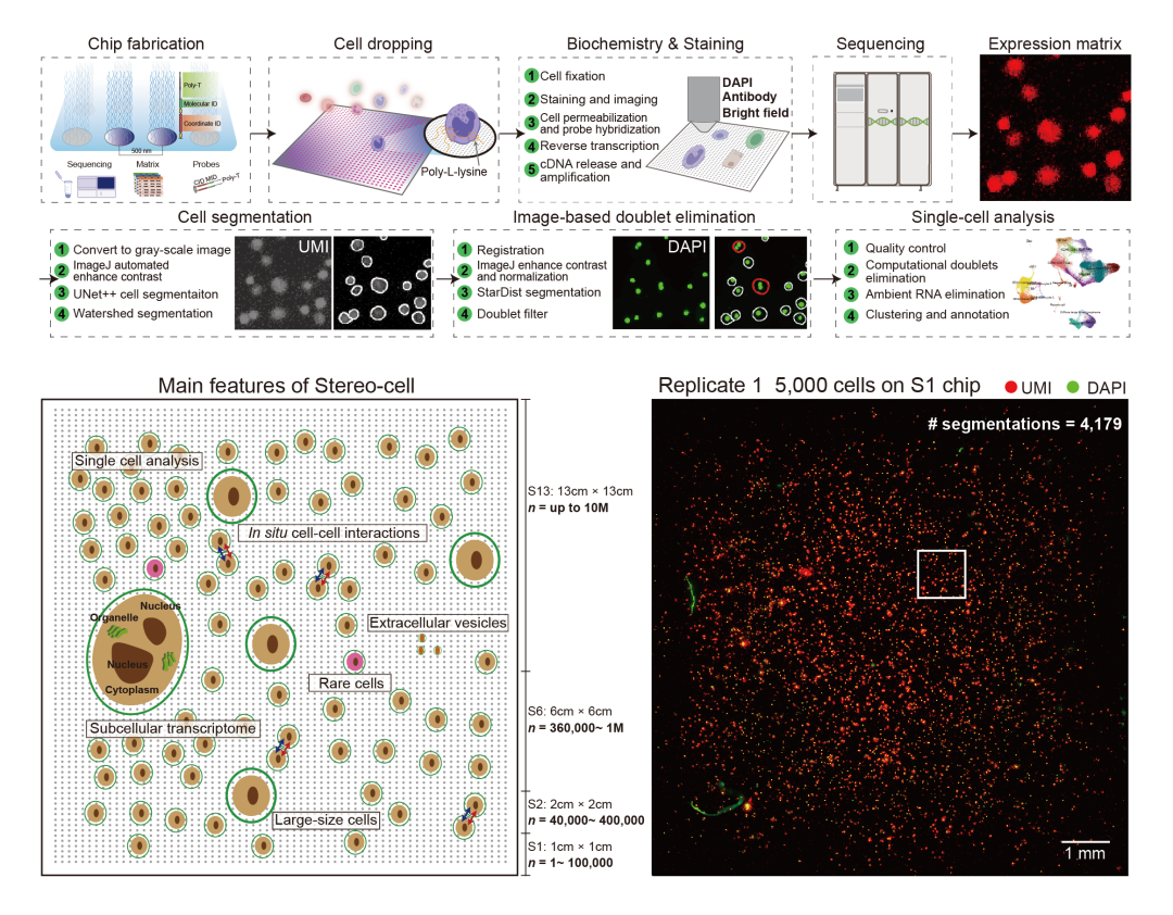 Stereo-cell基于DNA纳米球芯片建立实验流程,实现宽幅细胞投入通量