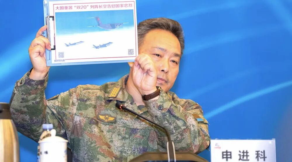 “东南西北中,奋飞歼-20。中国第五代战机歼-20,已经遍布‘东南西北中’,列装越来越多、飞得越来越远,在新时代练兵备战中日益发挥重要作用。歼-20振翅东海、南海和台海的壮美航迹,画出了一个强国强军的同心圆。在砺兵台海中,歼-20和歼-16、轰-6K、运油-20等国产新型战机振翅高飞,提升了捍卫国家主权和领土完整的能力。”