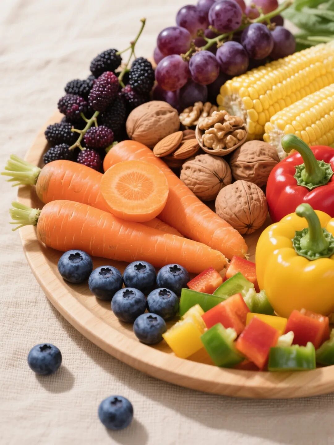 芥蓝(叶黄素、维生素C)、蘑菇(多种维生素矿物质)、玉米(玉米黄质)、红薯(β-胡萝卜素)。