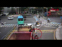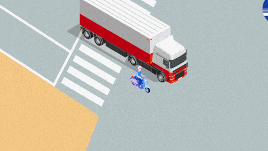 ▲电动自行车斜插进入大型车辆前方盲区酿成事故