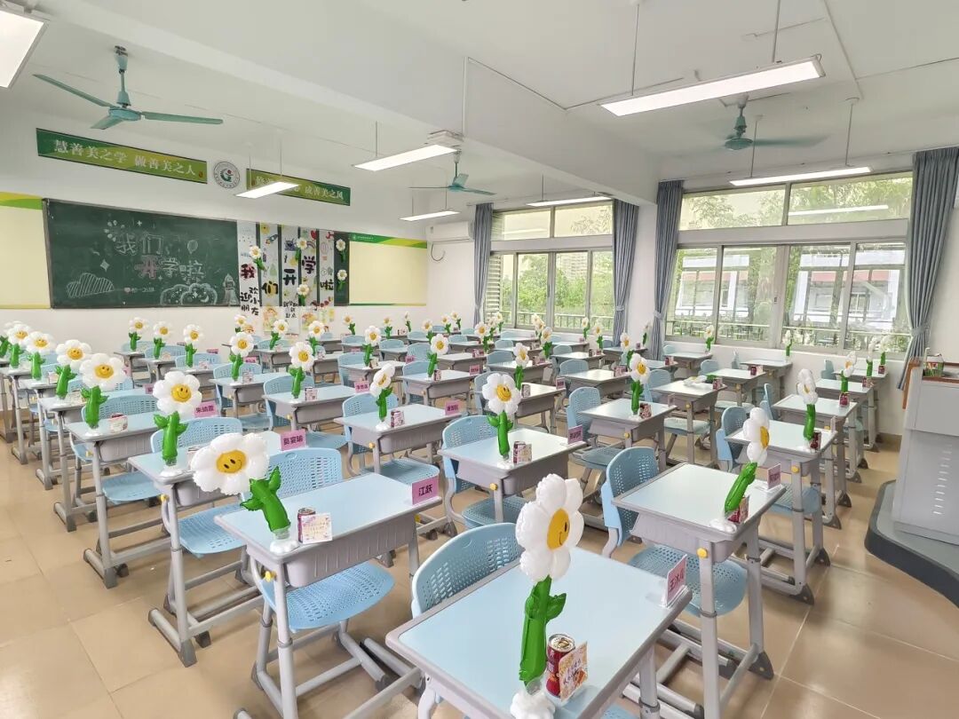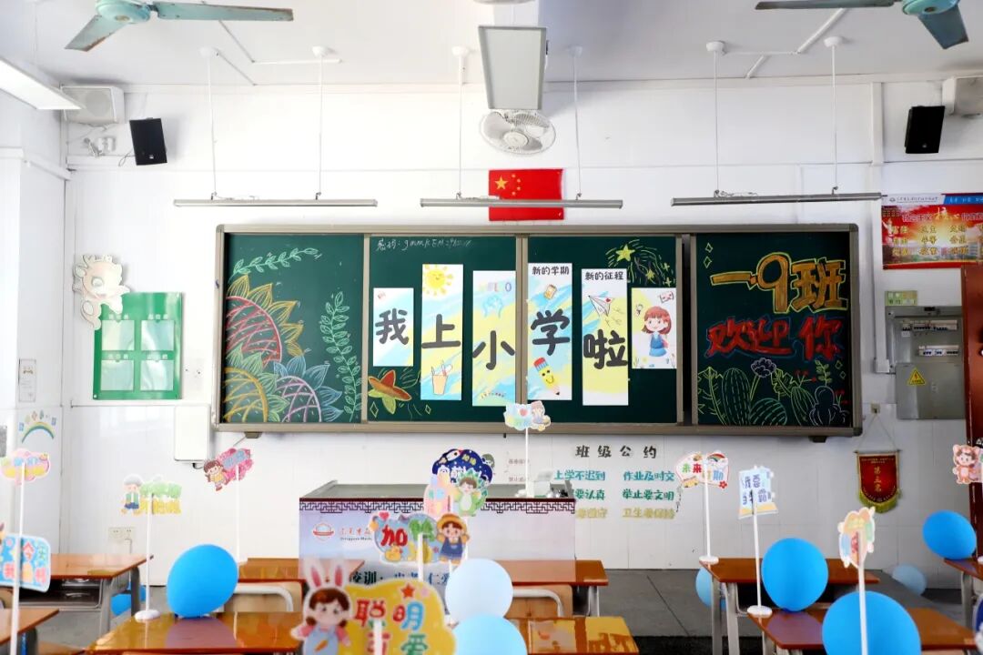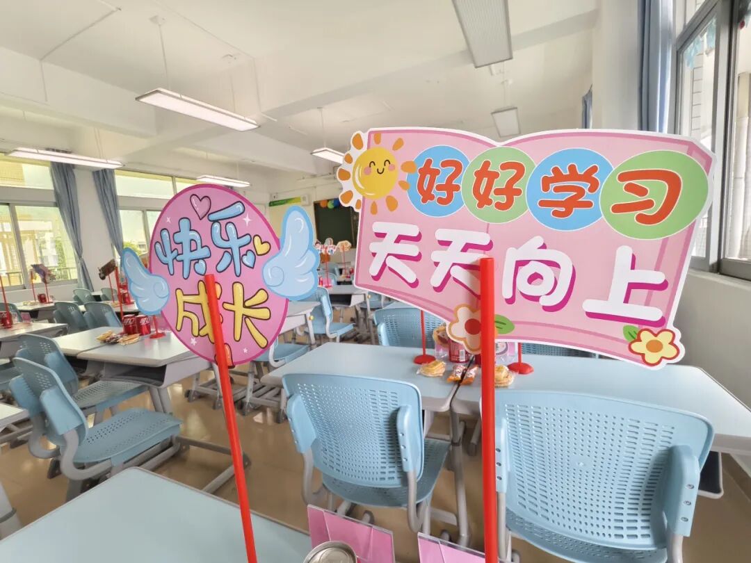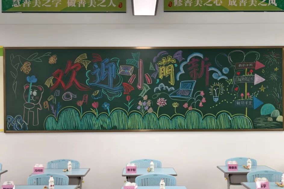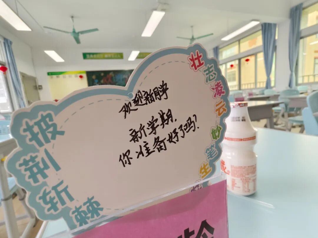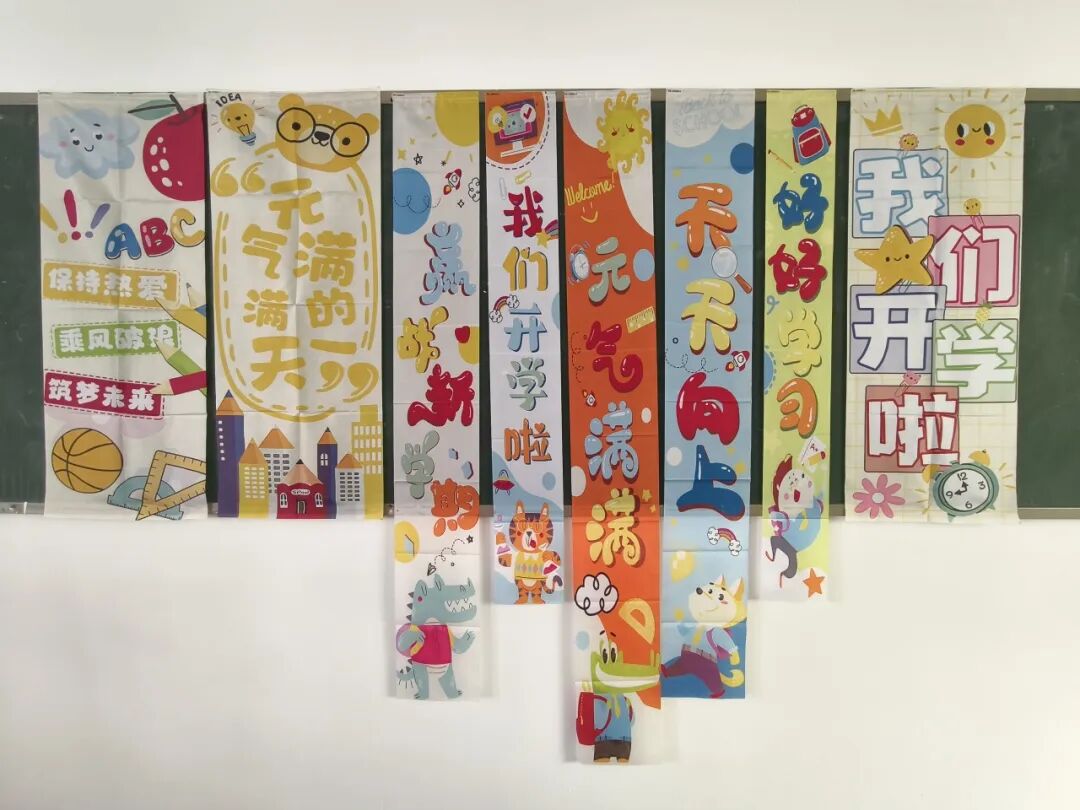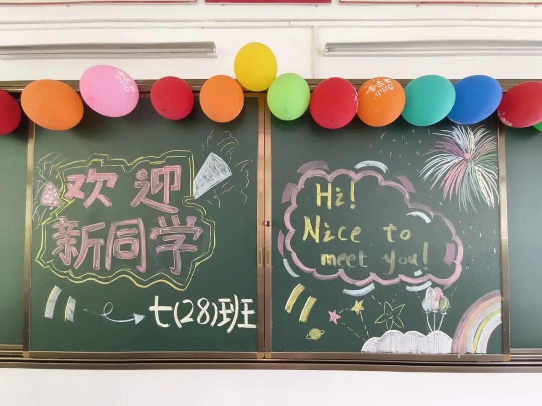 教室被精心布置,装点一新。黑板上书写了开学寄语,彩带、气球等营造活泼氛围。有的还在课桌上贴好新生姓名贴,助力学子快速融入校园生活。