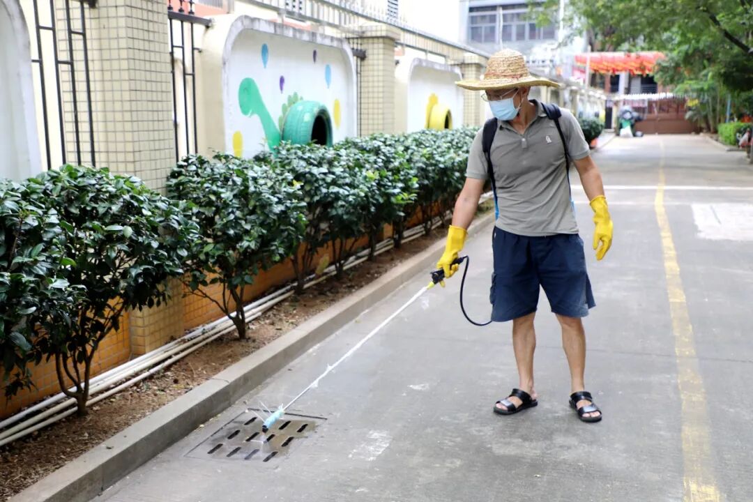 为预防基孔肯雅热、登革热等虫媒传染病,麻涌各学校、幼儿园开展了全覆盖、深层次的清洁消杀行动,清积水、清垃圾杂物,坚决杜绝卫生死角,从源头切断蚊媒传播途径。